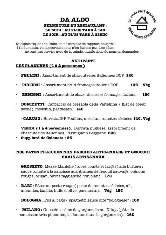 9/10Real Italian cooking in Aix. Great food, great people. The restaurant is very small, seating outside is on a narrow sidewalk of a narrow street without any realm. Definitely go here for the food, not for a romantic dinner