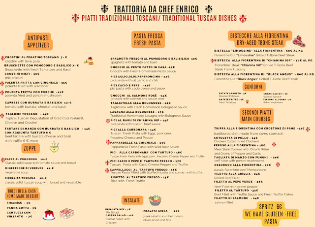 10/10We received personal attention from Chef Enrico from the moment we arrived. He has a great personality and made us feel at home in his Trattoria. We were traveling with family and I can speak for all four of us that we had a wonderful evening. We recommend the fillet for two people and house wine. Don't forget to save room for desert.