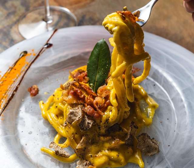 - Pici alla carbonara con tartufo