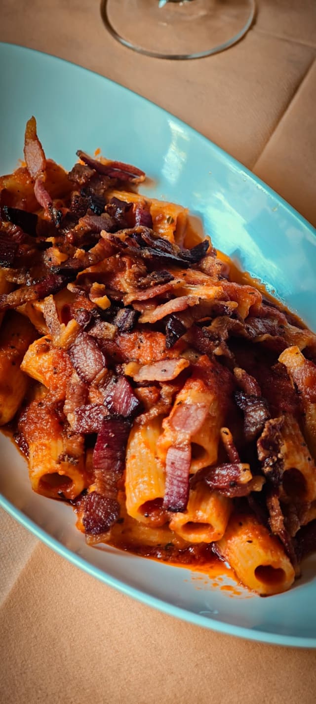 Pomodoro e guanciale. Scegli il tuo formato di pasta fra: rigatoni, bucatini, spaghetti e penne rigate