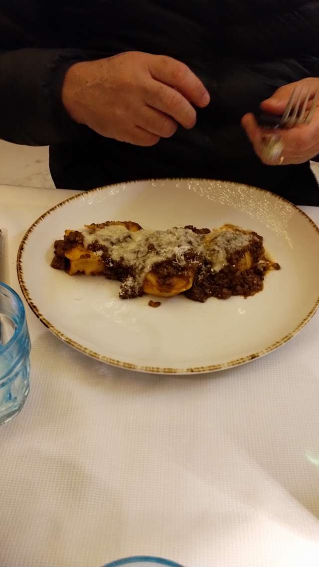 - Tortelli al ragù con crema di parmigiana