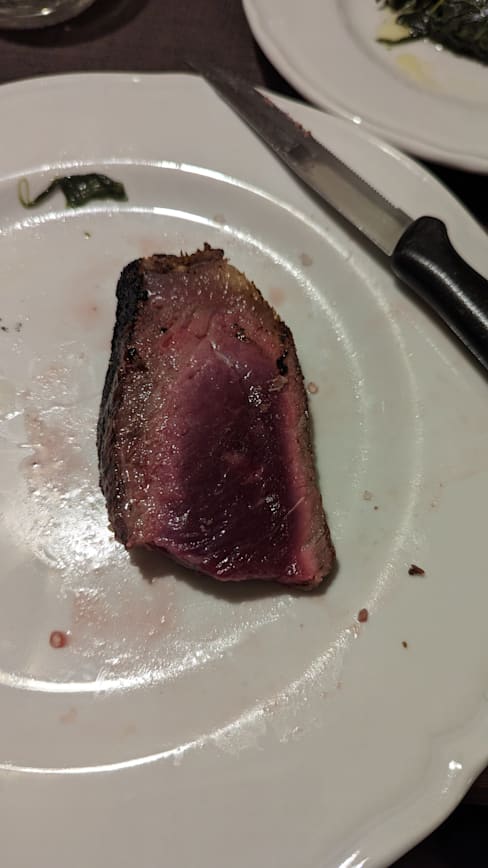 4/10The kitchen could not handle the numbers of covers. Some tables cheered when they had their courses delivered. I asked for the florentine steak but was told the smallest available was 1.5kg - when it turned up it was extremely tough. Another couple turned up after this point and sat next to us - they were advised that there was a 1.2kg florentine steak available. I suspect this was because we were tourists. Shame as the staff were very personable. They may have just been having an off night.