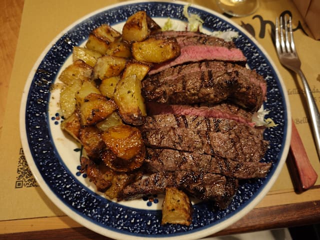 10/10My wife and I got the Florentine steak, potatoes and a salad. We skipped the appetizer and dessert because we weren’t that hungry as we had been trying alot of great food in Italy. The steak was cooked perfectly and tasted great. The potatoes and salad complemented it well. It was a nice change after eating pasta and pizza for several days! The price was very reasonable. Would definitely give this restaurant my business again!