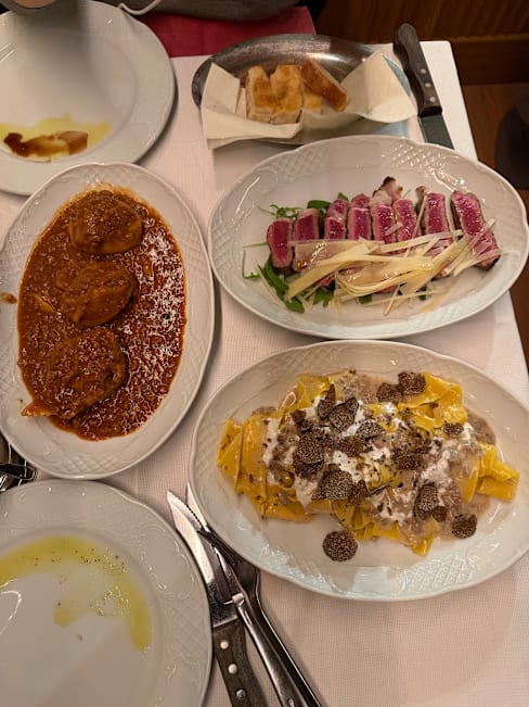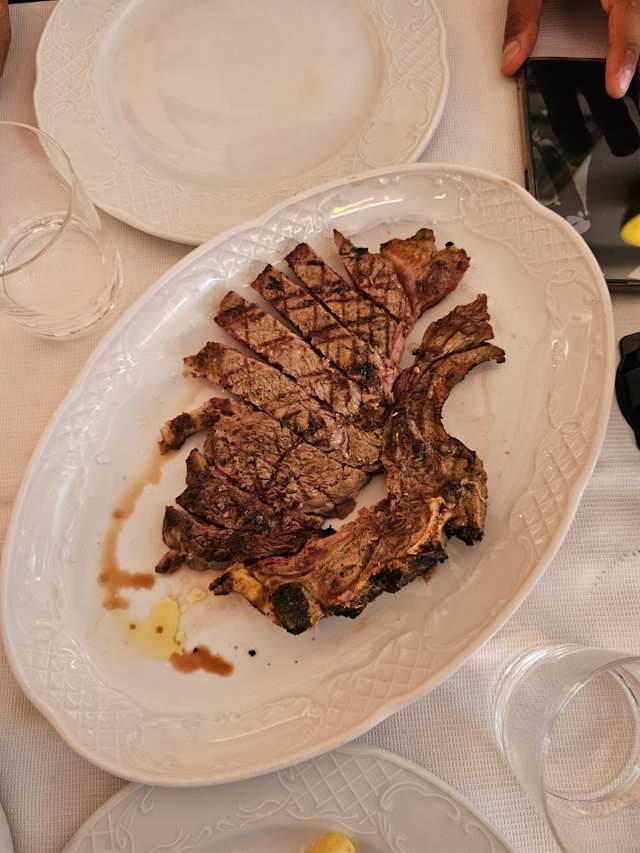 10/10The steak and pasta were divine 🤤 We had one bistecca alla Fiorentina shared between 3 people with the cream Parmesan truffle pasta, roasted potatoes and tomato beans (could've skipped this). Completely stuffed and couldn't have any dessert which was a shame because they looked delicious.