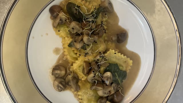 - Cubo croccante di polenta ripieno di funghi e gorgonzola
