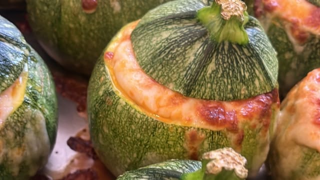 - Salsa di pomodoro, mozzarella, melanzane, peperoni e zucchine