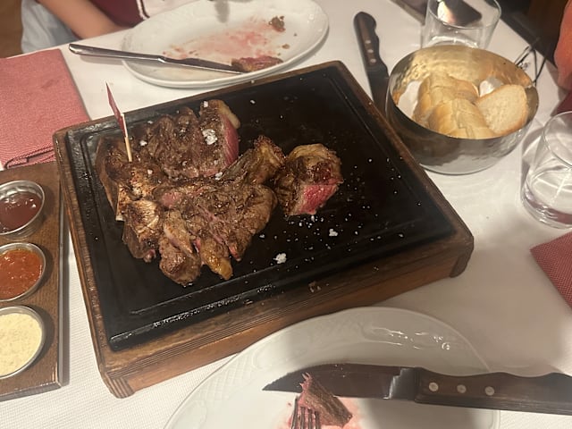 8.5/10The Florentine steak was delicious, the service was good, and the wait time was short. The mille-feuille dessert was bad and inedible, but the tiramisu was nice. It’s not a place locals go to, but it’s comfortable and tourist-friendly.