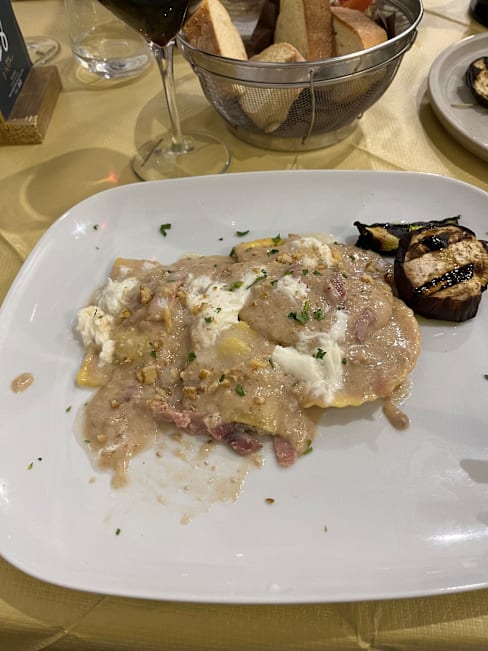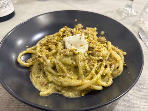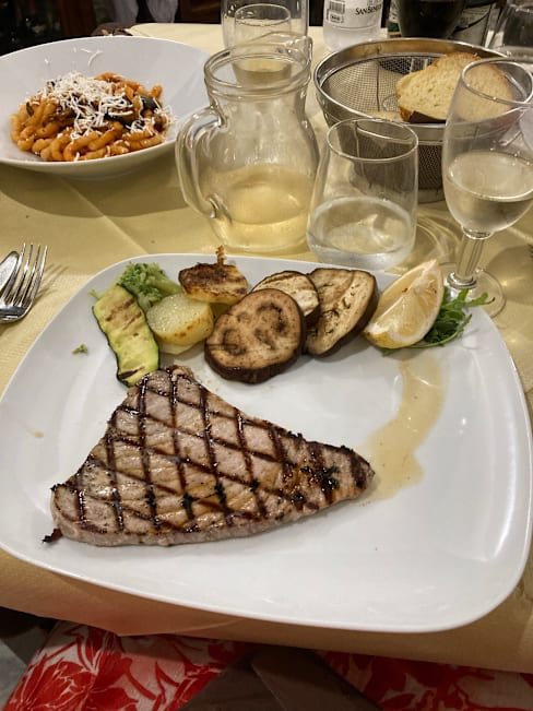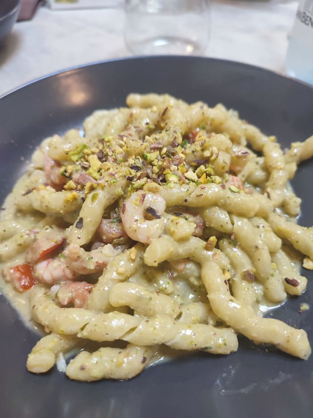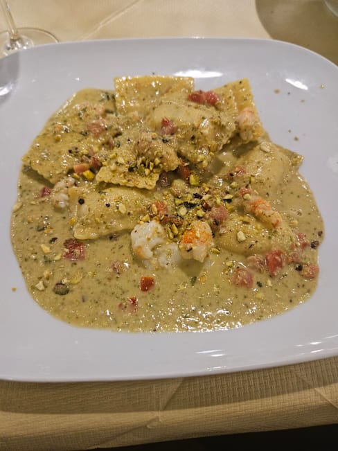 9.5/10So many new dishes for us to try as first time visitors. They did not disappoint! Stabrting with the Sicilian whims for appetizers to unique ways of presenting fish and amazing hazel nut pesto raviolis. The Sicilian wine was delicious and the chocolate mousse dome to die for. Read about this place in Rick Steves book. So glad we read about it. We would love to eat here again on our next visit. Highly recommend.