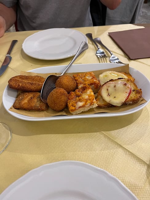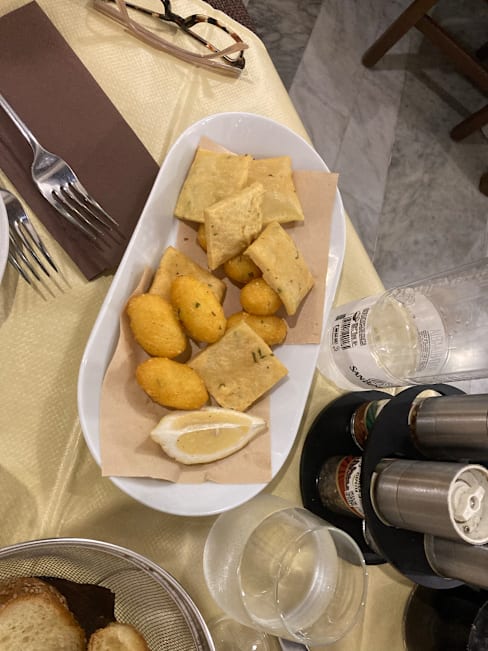 9.5/10+2We started with the sfizzi (assorted appetizers) which were good, but not great, and the panelle & crocche, which were outstanding! Our main courses were very good: grilled tuna, busiate alla Norma, and spaghetti marinara. We shared a small chocolate mousse for dessert along with Amari. The service was excellent!