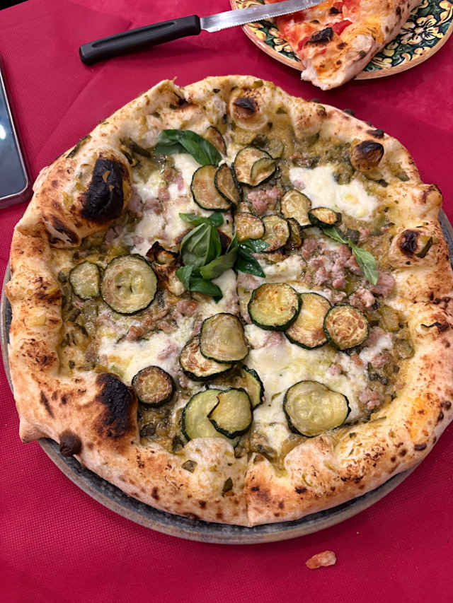 - Mozzarella, auricchio, salsiccia, crema di zucchine