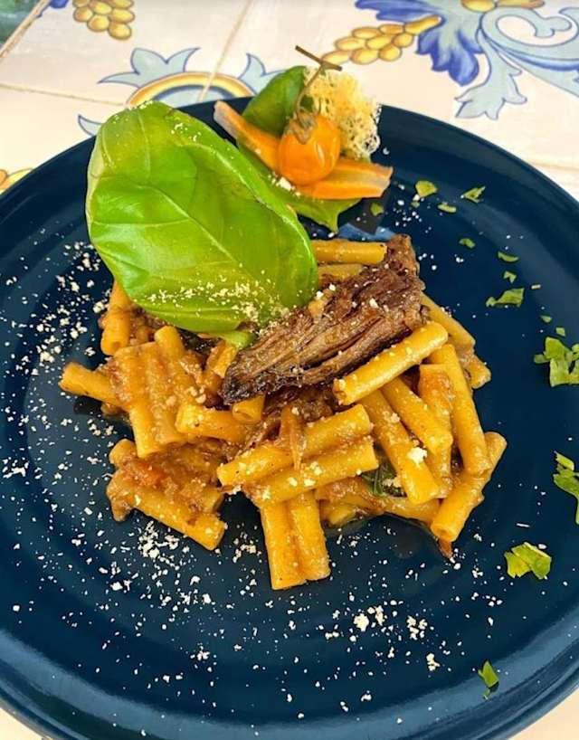 - Ragu napoletano, ricotta fresca provola, polettine fritte, basilico olio evo