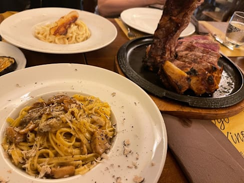 10/10Food and service was outstanding for our group of 8. We enjoyed the Bistecca alla Fiorentina, several pasta dishes, the pork ribs and sausage.