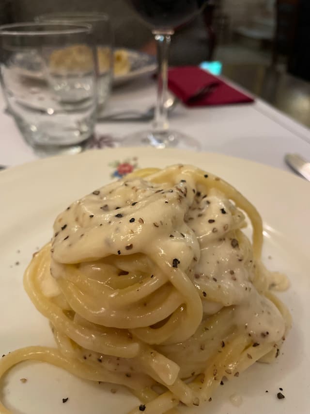 10/10The atmosphere is really nice, seems like a classical trattoria. The food was really good and the restaurant filled up quite quickly after opening. The food was great. We had amatriciana and parmigiano.