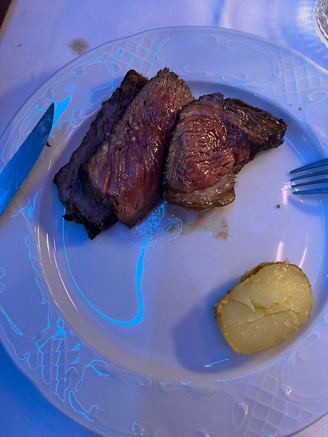 2/10Empty restaurant, poor service, and disgusting steak. The staff will give you the worst meat when you book via The Fork with a discount. We paid 85€ for only the meat, having a 50% discount because the staff said the only steak they had was a 1.89 kg steak (for 2) at price 10€/100gr. The meat was overcooked, not tasty, dry and chewy. Also there was literally no one else in the restaurant except for us, on a Friday evening at 8pm. It says a lot…