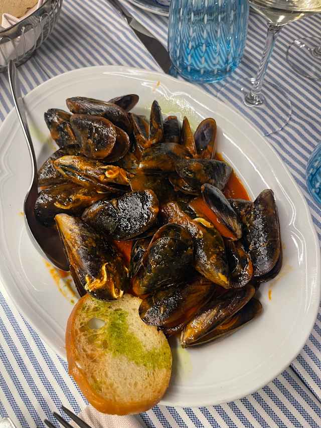 - Con frutti di mare, calamari, crostacei, astice, peperoni e piselli