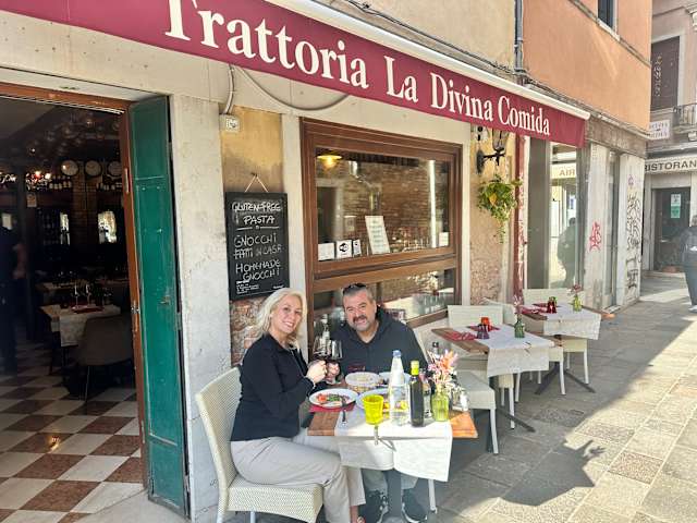 10/10My siblings and I recently traveled to Venice and had the opportunity to eat at Trattoria la Divina Comida. We had an amazing time from the moment we arrived. Everyone was so welcoming the ambiance was wonderful. The food was amazing. The homemade gnocchi and bruschetta was a 10/10. Every dish we ordered was beautifully presented and full of flavor. The service was attentive without being intrusive, and the staff clearly takes pride in creating a memorable dining experience. Highly recommend for anyone who values excellent food and top-notch hospitality.