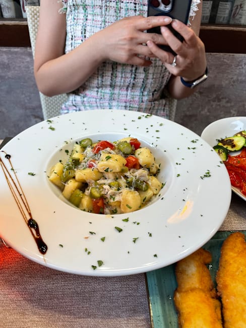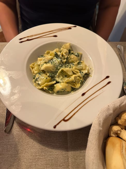 8.5/10We especially enjoyed our waiter, Marwan. He was quite personable and gave good suggestions. The food was delicious. We especially enjoyed the veal meatballs as our appetizer. They were served with a jasmine rice and a lovely tomato sauce. Our pastas were delectable. We had the cacio de Pepe and the tortellini. Both were wonderful and quite rich. Finished off with salads that were fresh. Good wine, good food and good service!