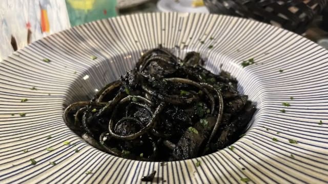 Linguine, seppie, nero di seppia, aglio e vino bianco