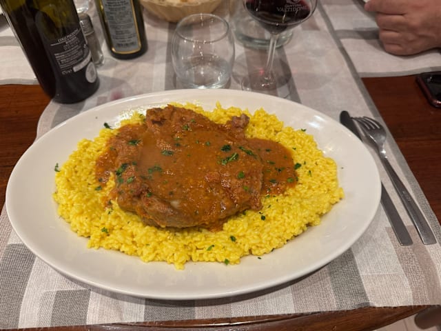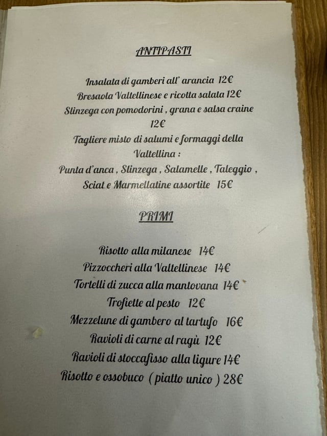 7/10Surely a cheap place to eat a bite at, an old-treated trattoria with limited tastings. The food is reheated but it isn't bad at all (it took them 3 minutes to serve us the food we ordered). I'd not order the risottos as it would probably be reheated too. The waiter that served us was young and inexperienced but nothing to truly complain, he just didn't really give us that much info even when asked. But that's ok. Came here for the 50% discount, probably wouldn't have come here without it. My ossobuco was full of parsley and tasted just like it. Pizzoccheri were better. I'd though come again with friends for a quick and cheap bite. Recommended with the discount, without it, prices would be a tad too high.