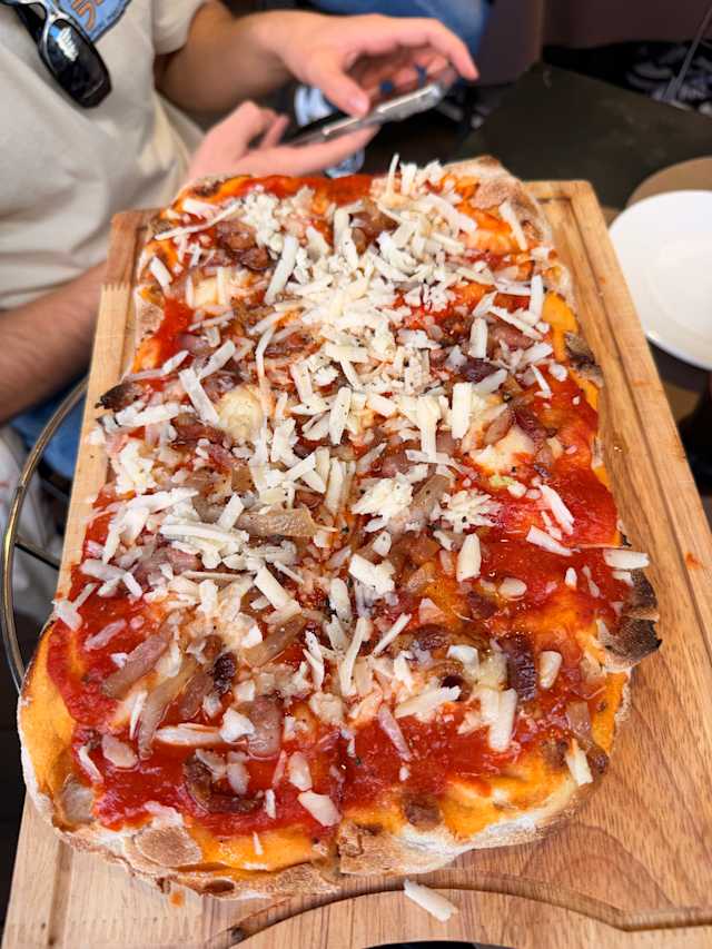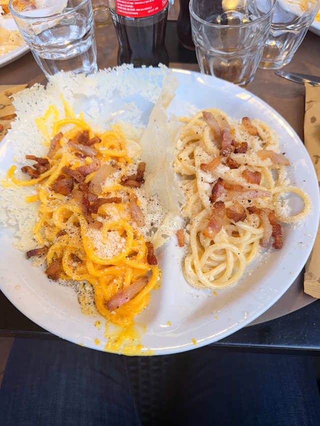 7.5/10Pasta carbonara, their flaghip dish, was delicious and abundant. Cicoria saltata was delicious as well. we also had an Abbacchio scottadito, also tasty, but a rather small portion and with very few baked potatoes to accompany it. Service was Ok, but the place was very crowded and noisy (even at 3 pm) , with tables very close to each other. good beer(with few selections) and reasonable price.