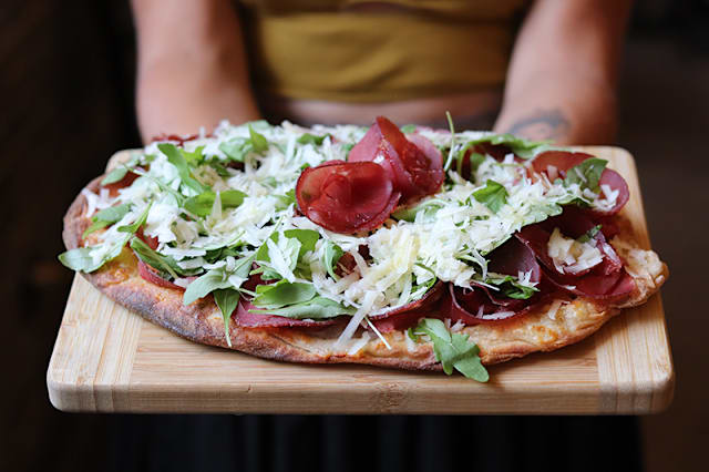 Carne di manzo, salsa di pomodoro, vino bianco, cipolla, olio evo., menta, peperoncino