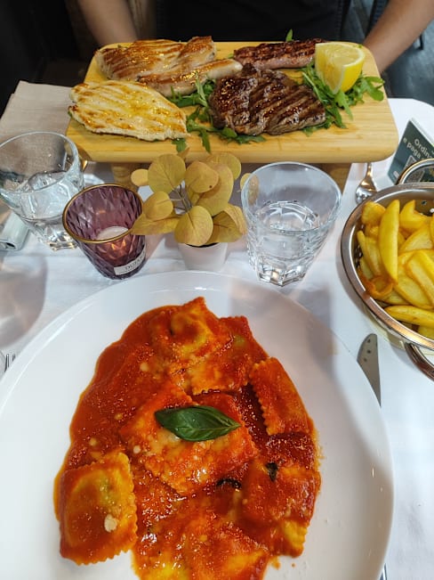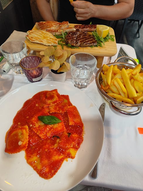 2/10Overpriced and a trap tourist restaurant. I was proposed potatoes that I thought came with the meat. Turns out I was charged 5 Eur for fried potatoes similar to the ones in McDonnald. The pasta has almost no cheese. No extra cheese was offered neither like it is the case in other restaurants. The glass of wine said 5 Eur in the menu, yet I was charged 7 Eur. Tip of 2 Eur was already included in the bill. Ambiance was really creepy. I imagine that is the reason the restaurants across the street were full and this one was empty.