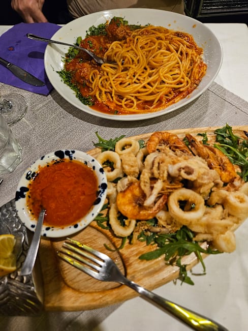 9.5/10Great amount of food, especially the pasta con polpettine (meatball pasta), which actually could be a dish for two people. Carbonara is a little bit salty for me but might be good for Italian, and the pasta is al dente and the sauce is creamy rather than taste like fried eggs. The waiter could speak English and give us antipasti for free. The free bread is also with a great amount. The only one bad thing is our food takes a little bit long time, but it may due to our early arrival