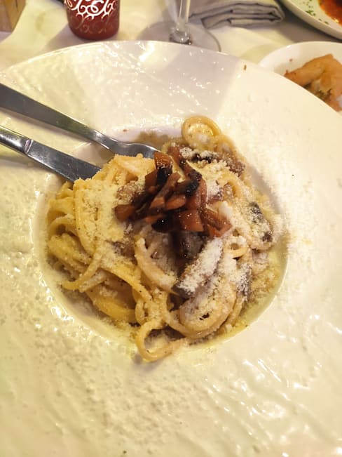 9/10really good pasta, we had la gricia, carbonara and cacio e pepe. all very tasty. and the calamari and prawn platter was very good. I can see why some reviews say that the place seen better days, but the food was great.