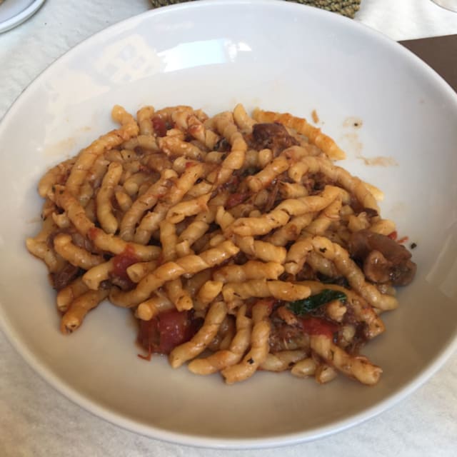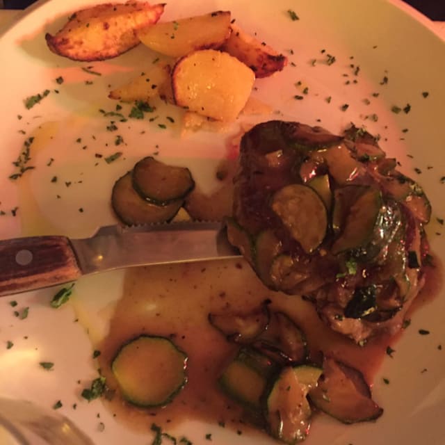 9/10Service was great. We had the tuna (very tender, tasty, and done perfectly ), eggplant pasta (creamy and elegant), zucchini, and chicoria....all excellent. House wine was good.
