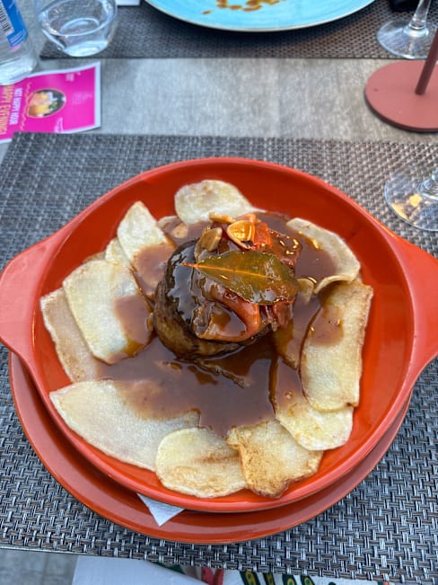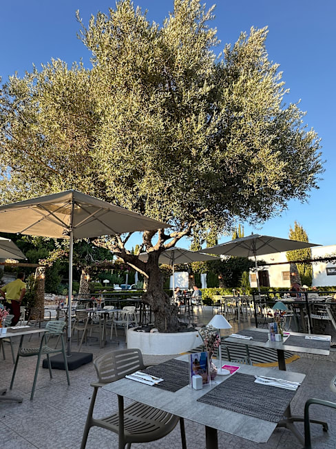 8.5/10Really enjoyed our visit, Outdoor seating under a fabulous old olive tree. Warm welcoming and attentive staff and service. Very good value, Freshly prepped dishes, Lasagne was excellent, Pizza wonderful and fresh sea bass was perfectly cooked. Beers and house wine great value.