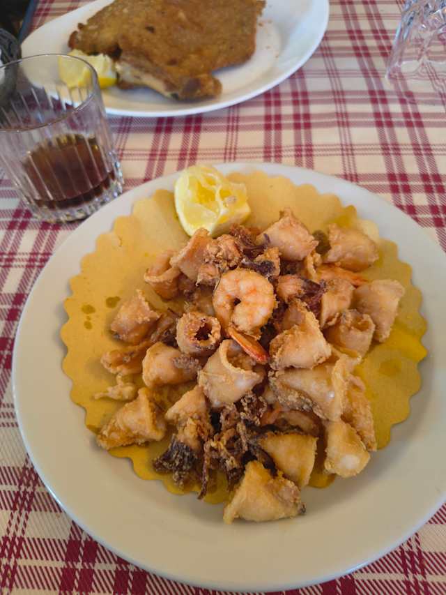 I've already been there and have already come back: it is a reliable, tasty trattoria of traditional Italian (mostly Southern) cuisine. This time "spaghetti allo scoglio" with the good sparkling white wine of the house. Top it all with a spirit: Amaro Silano or Capoblanco