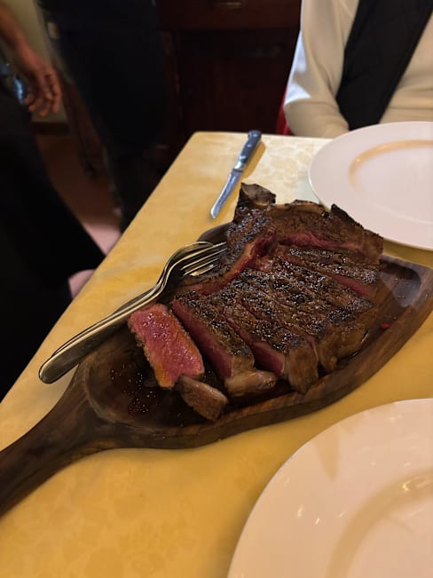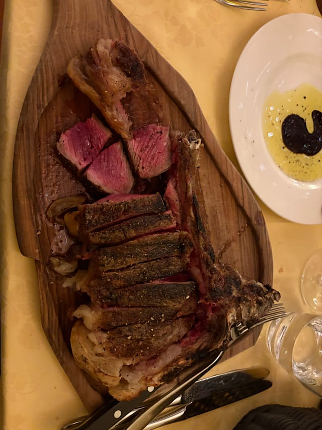 Ci dispiace che l’esperienza non sia stata di vostro gradimento. Tuttavia, ci teniamo a precisare alcuni punti: avete già lasciato due recensioni negative relative alla stessa serata, lamentandovi del prezzo della bistecca alla fiorentina. Il prezzo della bistecca con il filetto è chiaramente indicato nel nostro menu: 59 euro al chilo. La vostra bistecca pesava 1,2 kg, come da voi confermato quando ve l’abbiamo mostrata al tavolo prima della cottura. Il totale, facendo un semplice calcolo, è di 70,80 euro. A Firenze è possibile trovare prezzi inferiori, ma noi puntiamo tutto sulla qualità delle materie prime e sulla cura nella preparazione. Crediamo che siano proprio questi valori ad averci fatto guadagnare le migliaia di recensioni positive che raccontano la nostra bistecca e il nostro lavoro con entusiasmo e affetto.