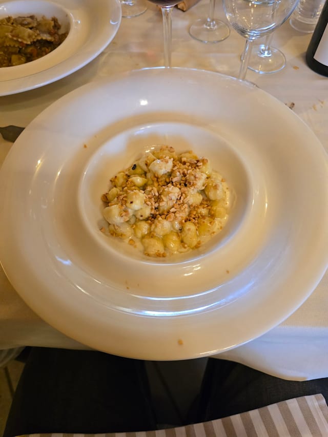 Stunning location, free parking at the restaurant and in the nearby piazza. Food was all delicious. Plenty of vegetarian options, as well as a kids menu. Really enjoyed our visit.
