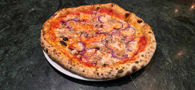 - Tonno, cipolla, mozzarella, pomodoro