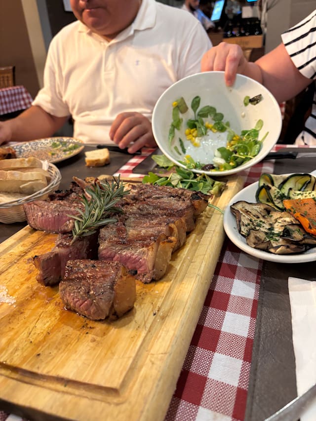 10/10The huge steak was delicious as well and all the food. Wine was equal to the food. Very chilled atmosphere for the customers, but the waiters were very professional. Our waiter was awesome and helped us order in the right way for authenticity purposes. I don’t recall his name but we kept joking about how he was going to have to help us eat the rest of the steak. Haha 9/10 overall for us.