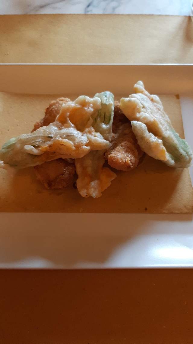 - Tris di antipasti composto da flan, insalata di coniglio e torta di verdure