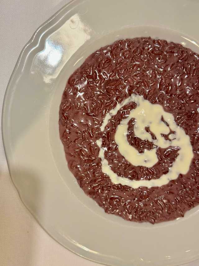9.5/10It was so beautiful to eat outside. The risotto had such an interesting strong taste, which seemed more like cheese than wine to me. Service was slow because it was a Friday. The rum babà was a bit dry and strangely hard to cut. I would eat there again but order a different dessert.