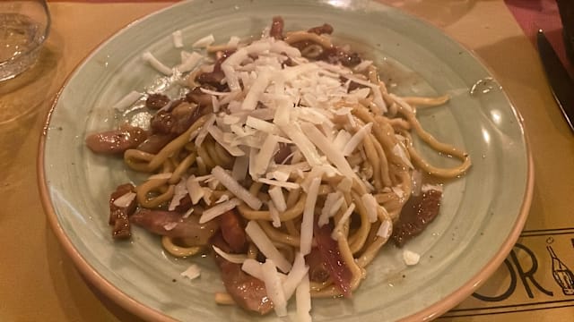 9.5/10Warm and welcoming. Fast attentive service. Not much of a language barrier, staff very easy to communicate with. It was our third time eating there and it has quickly become one of our favorite restaurants. The food is very well prepared and delicious. You have to try their pasta with boar sauce. Fantastic. Prices are reasonable. I highly recommend this establishment.