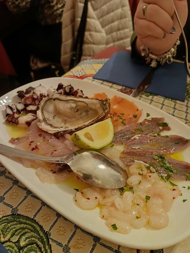 10/10+1It was a great experience with delicious food , friendly atmosphere , welcoming & nice staff. We ordered as an appetizer chef’s bruschette, mix of raw & cooked fish/seafood , pasta a la Norma and pasta carbonara. Big portions and very tasty. As well we received some small apetizers on the house. All this accompanied with white wine . As a desert a fresh sorbeto. Fair prices. We will repete !