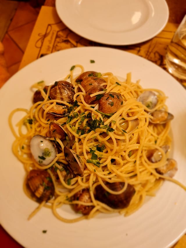 6/10The ambiance was pleasant. Locals were there. The tiramisu was excellent as were the scallops. The spaghetti pomodoro was just ok. The staff questioned our reservation, as if they were expecting someone else. We are Americans with an Italian surname, I’m not sure if that was the confusion. We were seated and treated well but curtly. When I asked a question in my limited italian the young woman on staff looked at me like I was offending her somehow. The older staff did try to be friendly.