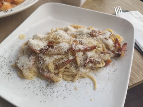 5/10We were disappointed by the quality of the food. The presentation is quite nice but the taste is not. We had carbonara and it simply doesn't taste like it. The other dish was a pasta with broccoli and mozzarella and it was very disappointing. I guess it is Italian food for people who have never eaten in Italy or in a good Italian restaurant. It is a shame since the atmosphere of the restaurant is quite nice, the wine choice is great and the service is friendly.