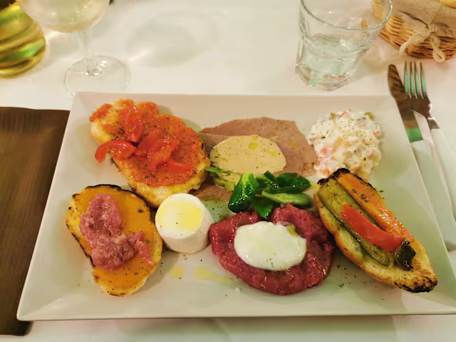 - Assaggio piemontese (carne cruda, vitello tonnato, tomino), insalata russa