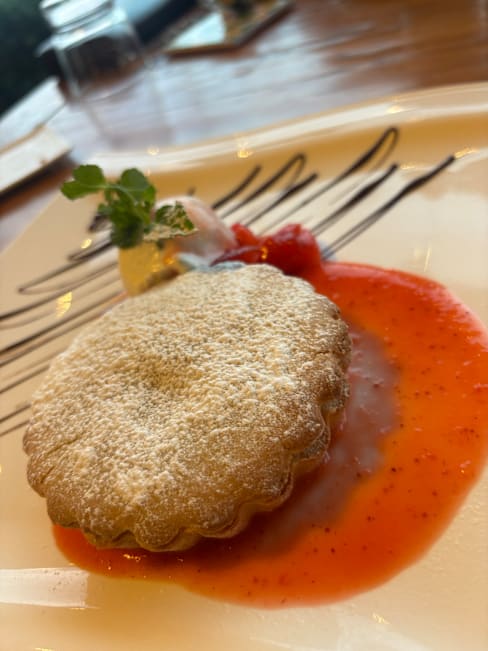 6/10beautiful place lovely atmosphere and great service. the food was unfortunately very disappointing and tasteless. the place has its own vegetable garden. which the waiter proudly told us about. but we didn't see much of that in our dishes. the most delicious thing was our starter, which was also the only dish we finished. We had some very nice smiling waiters who provided a lovely and professional service.