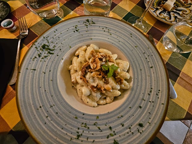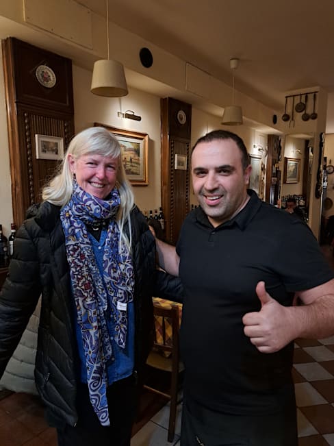 10/10Every time we come to Florence, we come to the Trattoria Vasari. Why, you ask? For several reasons: they remember us, the food and service is excellent, and their reviews are consistently good. We were not disappointed this time. We were warmed greeted by Tony. We dined with them twice on this trip. Tony, Serena and Johnny took excellent care of us. For the first dinner, we enjoyed the Osso Bucco and the Gnocchi with Pear and Gorgonzola. Oh my, both dishes were freshly prepared and loaded with flavor. The restaurant is what you want an Italian trattoria to look like – it has atmosphere & warmth. My husband finished his meal with cheesecake with fresh berries. For our next dinner, I enjoyed Ribollita – the Tuscan bread & vegetable soup. It is such a hearty soup. My husband started with bruschetta with tomatoes. He then had what he considered to be the best Filet with gorgonzola with walnut sauce on this trip in Italy. It was cooked perfectly. This is why we come here.