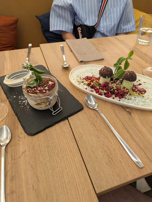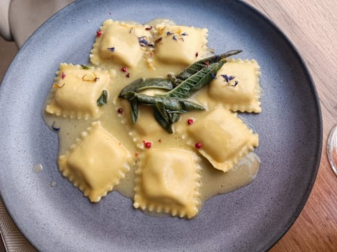 10/10Greeted by friendly staff and offered a choice of tables in a quiet pleasant room. Menu had so many options but I just had to try the carbonara which was simply divine, made of course with guanciale, my wife had a beautiful ravioli which was sumptuous. We also had starters, the trio of fish and burrata, both of which were excellent. The Panna cotta and tiramisu ended the meal perfectly. I can highly recommend this epicurean delight of gastronomic choices.