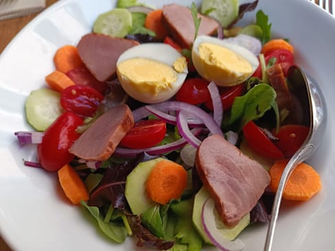 7/10Assorted fish starter was excellent and was large enough for two. The prawn and avocado salad was disappointing; the prawns tasted off and the avocado was hard.