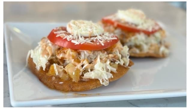 Tortilla de maíz, quesillo, salsa de tomate,...