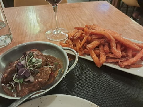 7.5/10I was imediately seated by I'm not sure they were ready to open as the dining room area.was very warm and stuffy. The service itself was good and my two choices were ok and excellant asi highly recommend the pork cheeks. I think the uncomfortable room temp/ atmosphere unfortunately took away from the whole experience so rating reflects it.