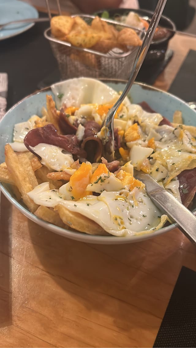10/10+1Stunning wee restaurant with the friendliest staff. We had the stuffed pork cheek with sweet potato, goats cheese (recommended by the staff), ham/egg/chip dish (can’t remember the name of it but it was brilliant!), fish (tiras de choco), and lemon meringue pie to finish. It was divine. Highly recommend.