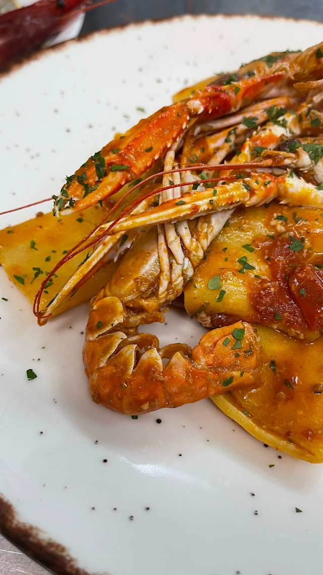 - Grigliata mista di scampi, gamberi, seppia e pesce spada